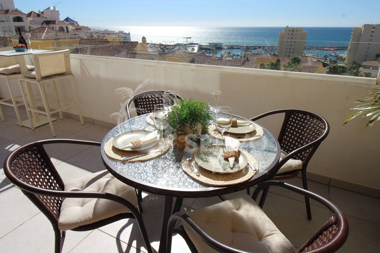 Impressive apartment with sea views near the Port of Estepona! You can breathe tranquility: relax with the whole family! Large common spaces, with gardens and swimming pool. This apartment is equipped with 2 bedrooms, 2 bathrooms, kitchen, spacious living room and terrace. Air-conditioning. Close to leisure area in the port and supermarkets.