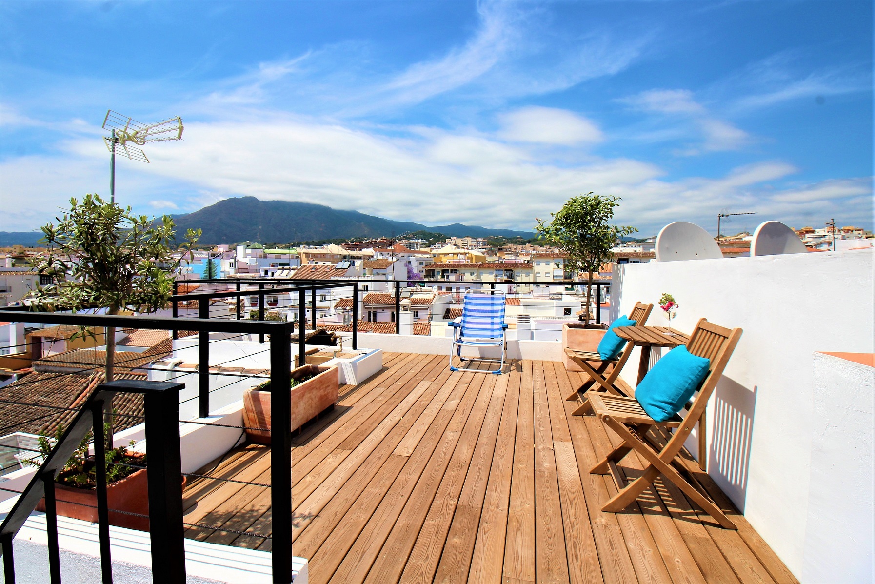 Incredible house in the heart of Estepona, in its magnificent old town. It has a large fully equipped kitchen, living room, 3 bedrooms, one of them with a dressing room, 3.5 bathrooms, as well as a beautiful terrace where you can enjoy a good meal outside.