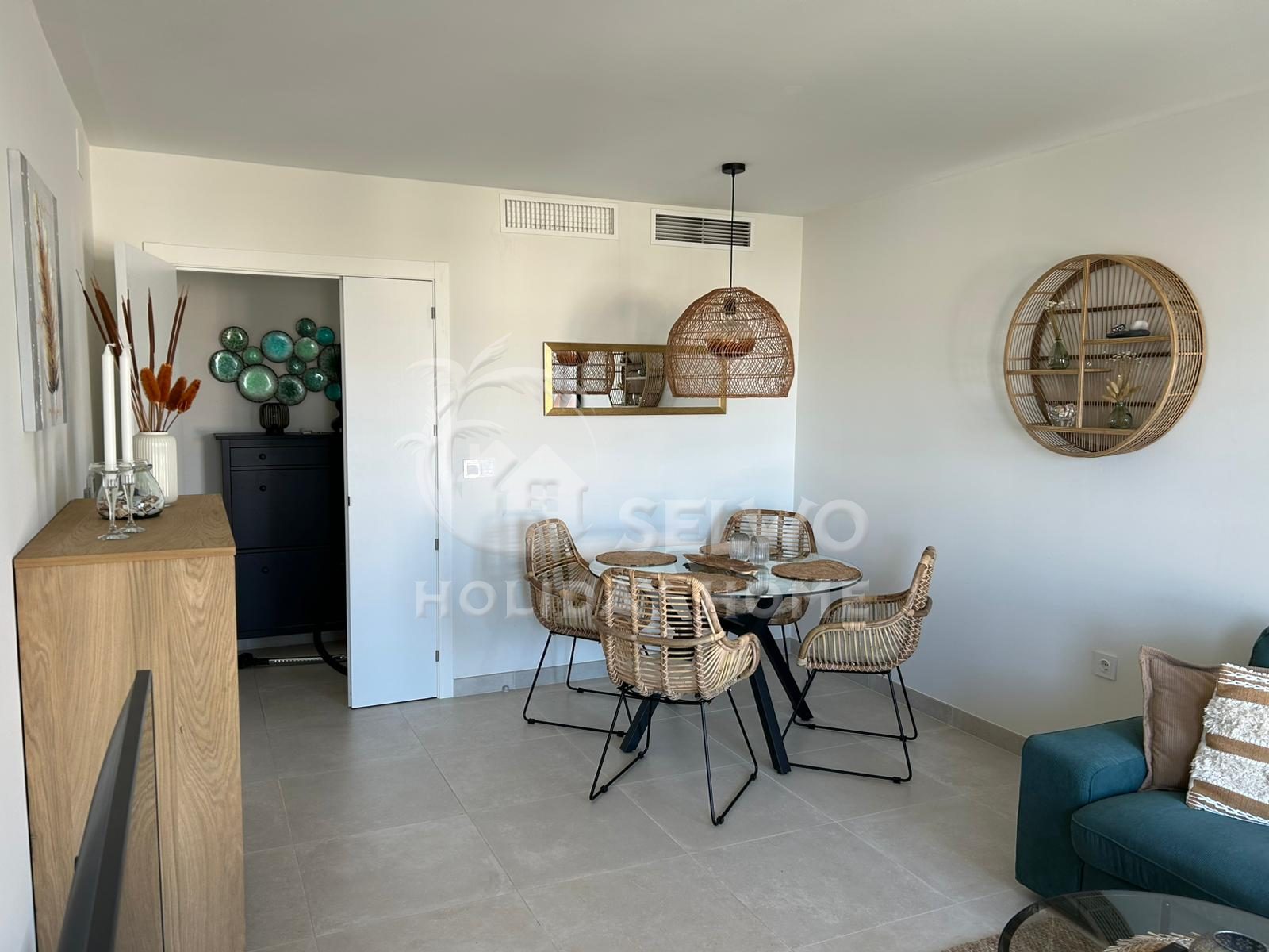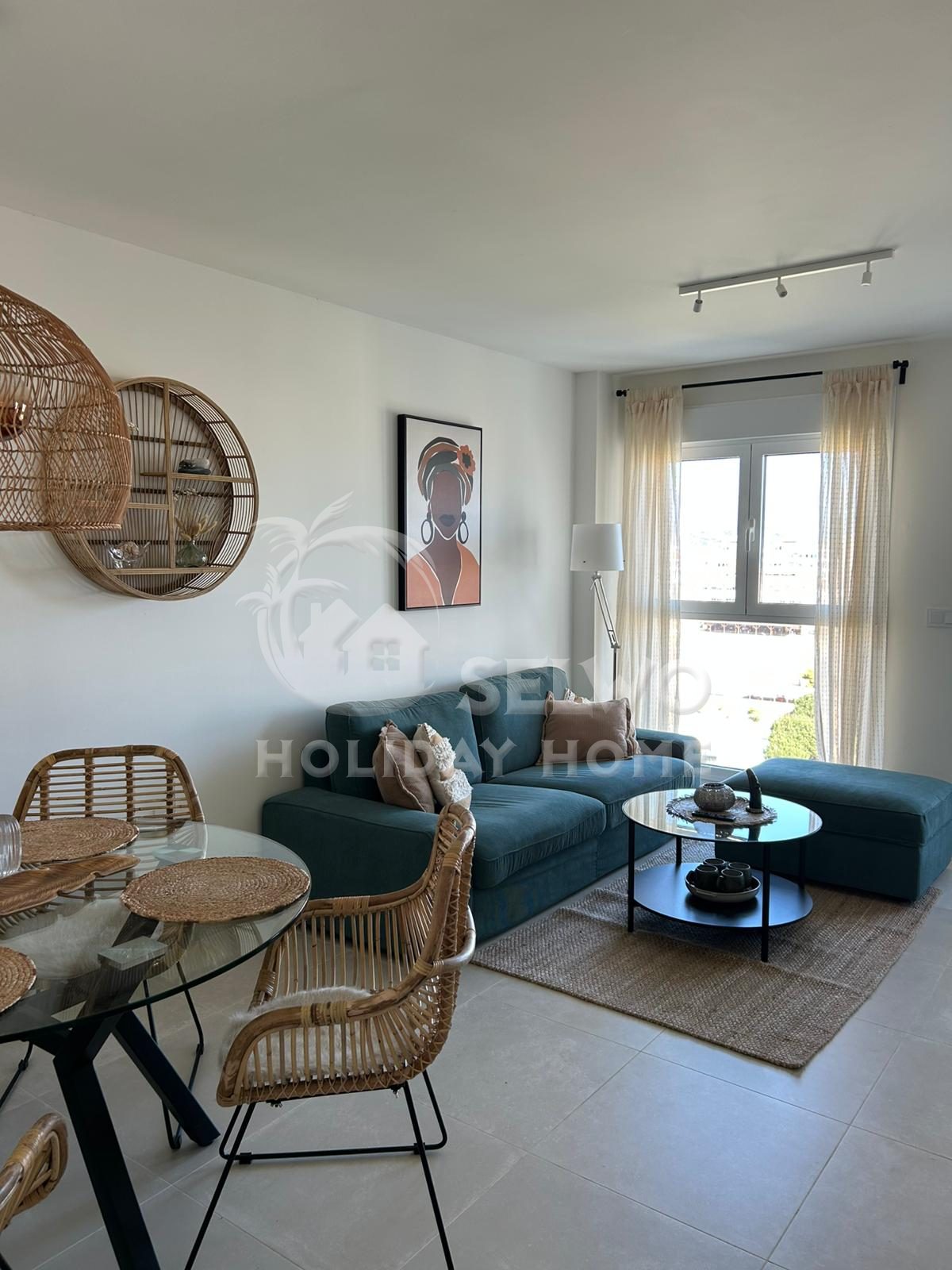 Denna moderna lägenhet belägen i populära Urb. Puerto Blanco ligger bara cirka 6-7 minuters promenad från småbåtshamnen i Estepona. Här erbjuds tre sovrum och två badrum samt en balkong för att kunna avnjuta mat/dryck eller bara njuta av lite förmiddagssol. Lägenheten är perfekt för familjer på grund av läget och bekvämligheterna. I stora sovrummet finns en dubbelsäng med en-suite badrum. Det andra sovrummet har en dubbelsäng och det tredje sovrummet har två enkelsängar. Dessa båda delar på ett badrum. Köket är komplett för en funktionell semester. Det finns dessutom en separat tvättstuga med tvättmaskin. Balkongen vetter mot sydost och är omgiven av glaspaneler vilket gör att den känns ännu rymligare. Vardagsrummet består av ett matbord med fyra stolar, en bekväm soffa och en Smart-TV. Lägenheten är helt luftkonditionerad med ett nytt och effektivt centralt system och det finns också en höghastighets fiberoptisk internetuppkoppling. Inom urbaniseringen av Puerto Blanco hittar du den stora gemensamma poolen en kort promenad från fastigheten. En bil är inte nödvändig under din vistelse men det finns en privat parkeringsplats i byggnadens garage om det behövs. ”Las Mesas Centro Deportivo” ligger bara 3 minuters promenad bort och centret erbjuder både Padeltennis och Gym (inomhus/utomhus)! Sammantaget en fantastisk familjelägenhet nära allt som behövs för en fantastisk semester!
