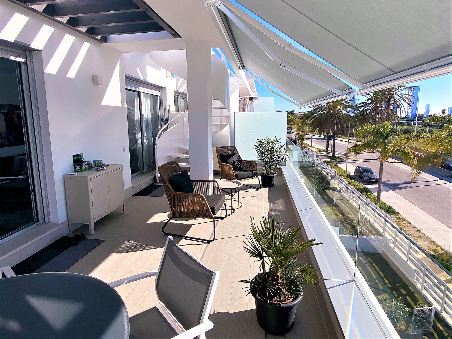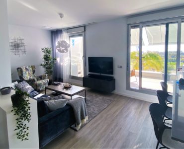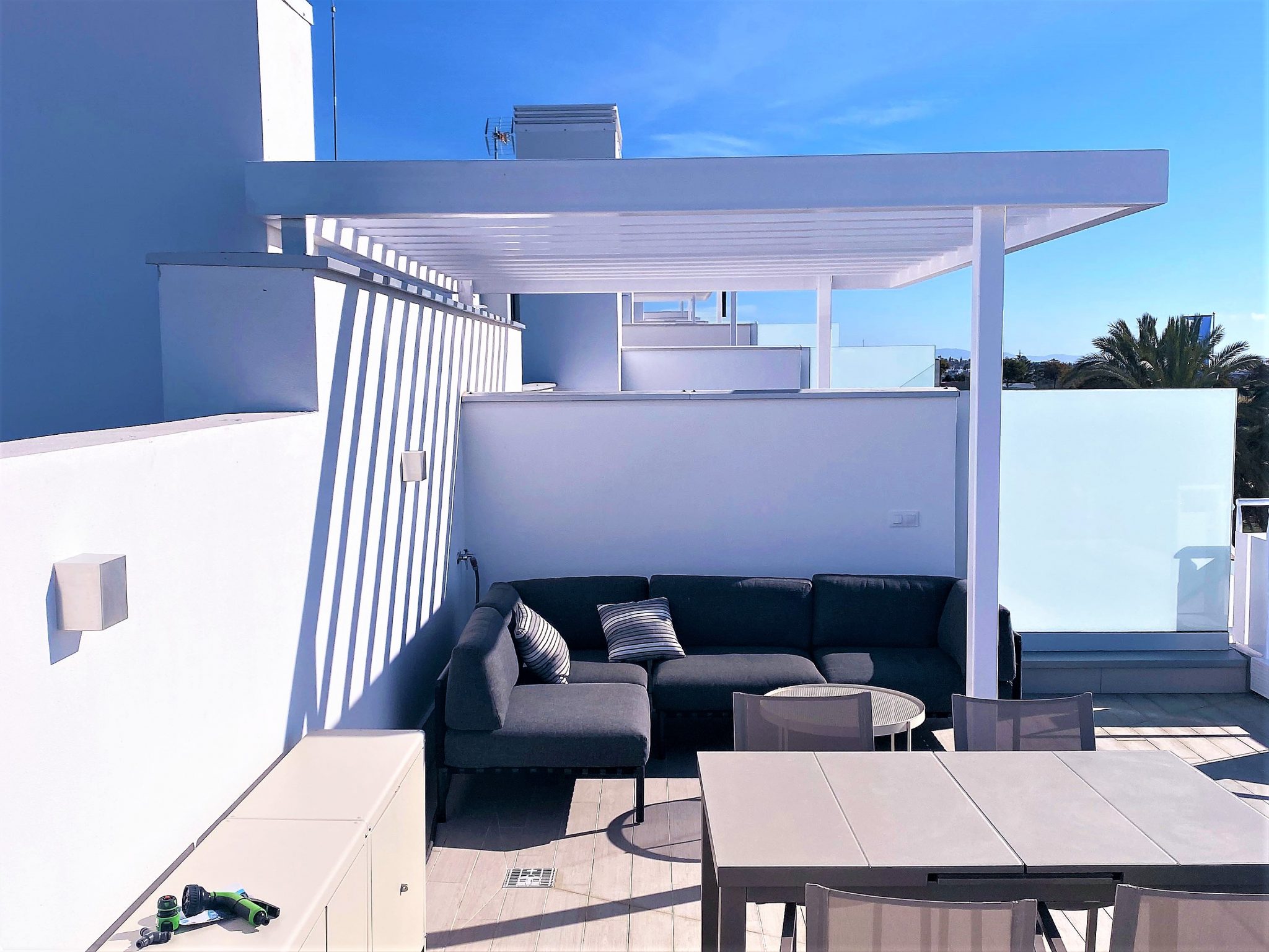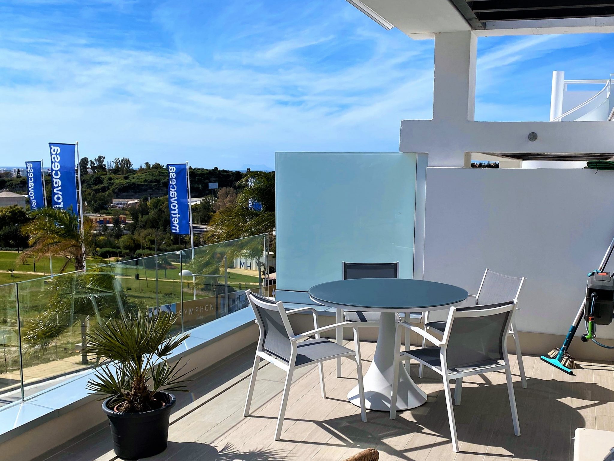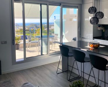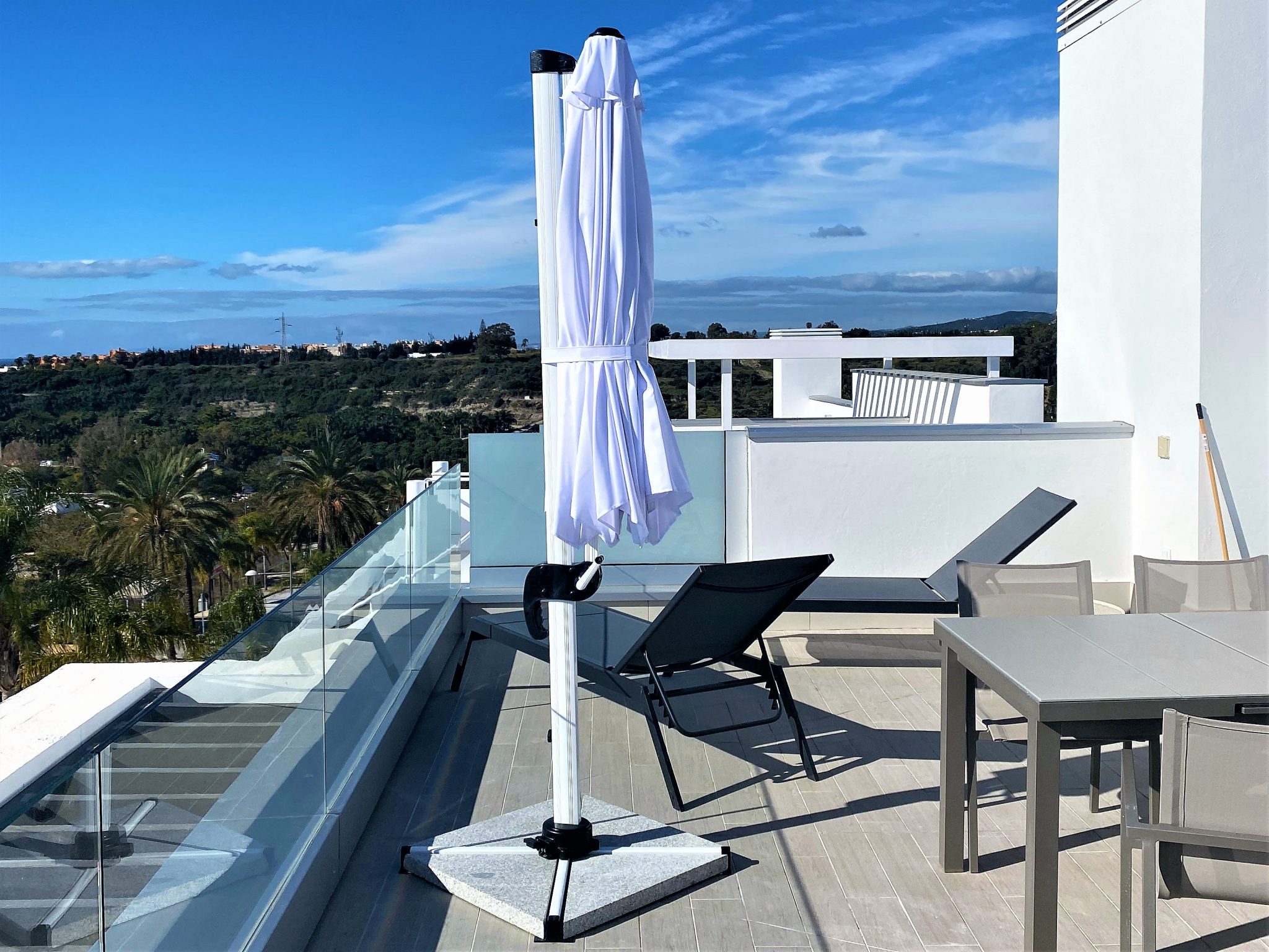 Nybyggt penthouse på ”New Golden Mile”. Perfekt läge med gångavstånd till ett brett utbud av bekvämligheter i den charmiga byn Cancelada, de gyllene stränderna och nära flera golfbanor. Penthouset har 2 sovrum samt 2 badrum, öppet kök och är byggt i högsta standard. Köket är fullt utrustat för en bekväm semester. Från vardagsrum/kök har ni access till en härlig terrass med plats att äta och koppla av. I tillägg finns det även en takterrass med matbord, solstolar och en lounge area, perfekt för härliga sommarkvällar/nätter. Från takterrassen har ni en fantastisk utsikt utöver medelhavet, med Gibraltar och Marocko i bakgrunden och även de vackra solnedgångarna bortom bergen.
