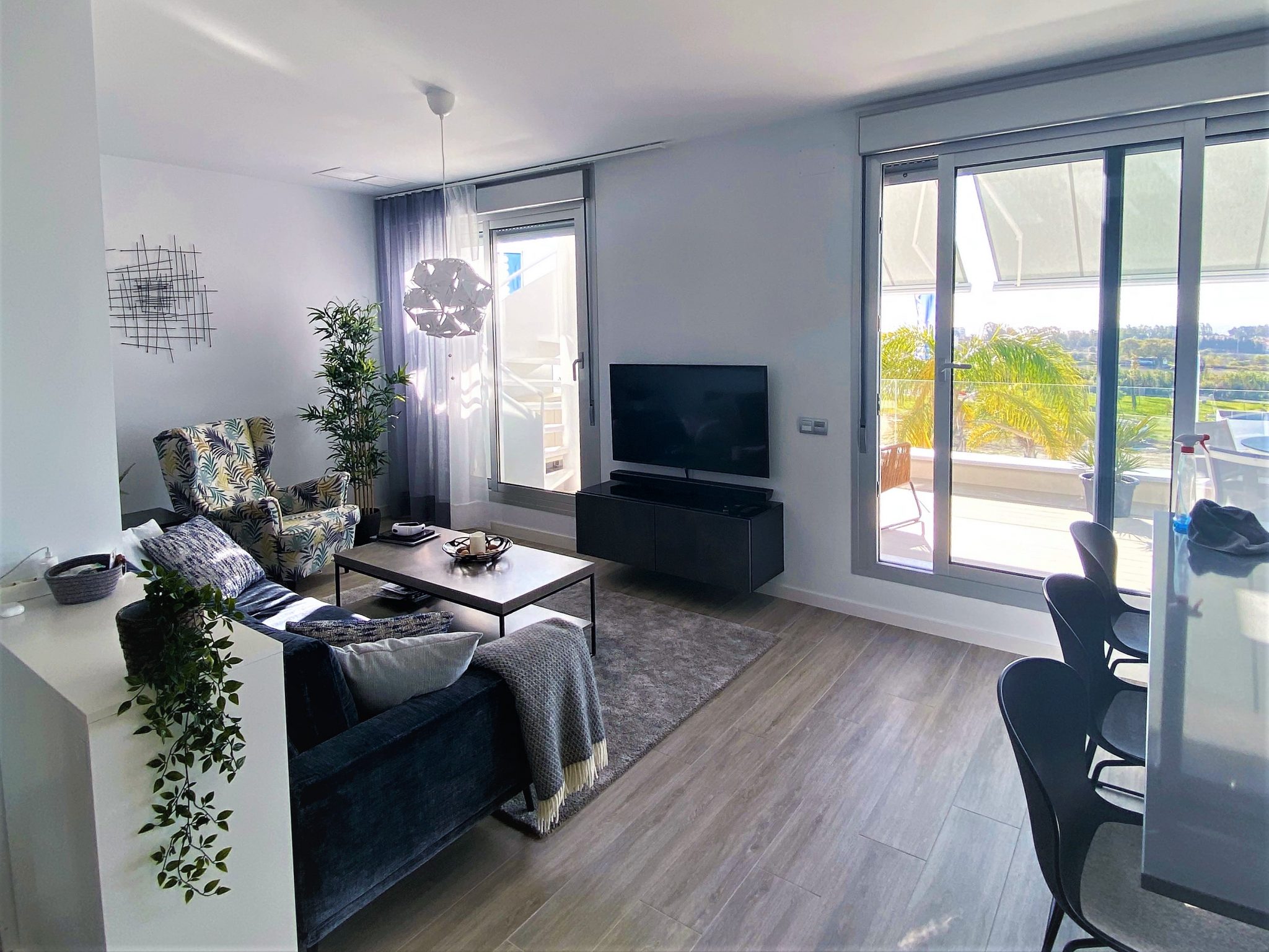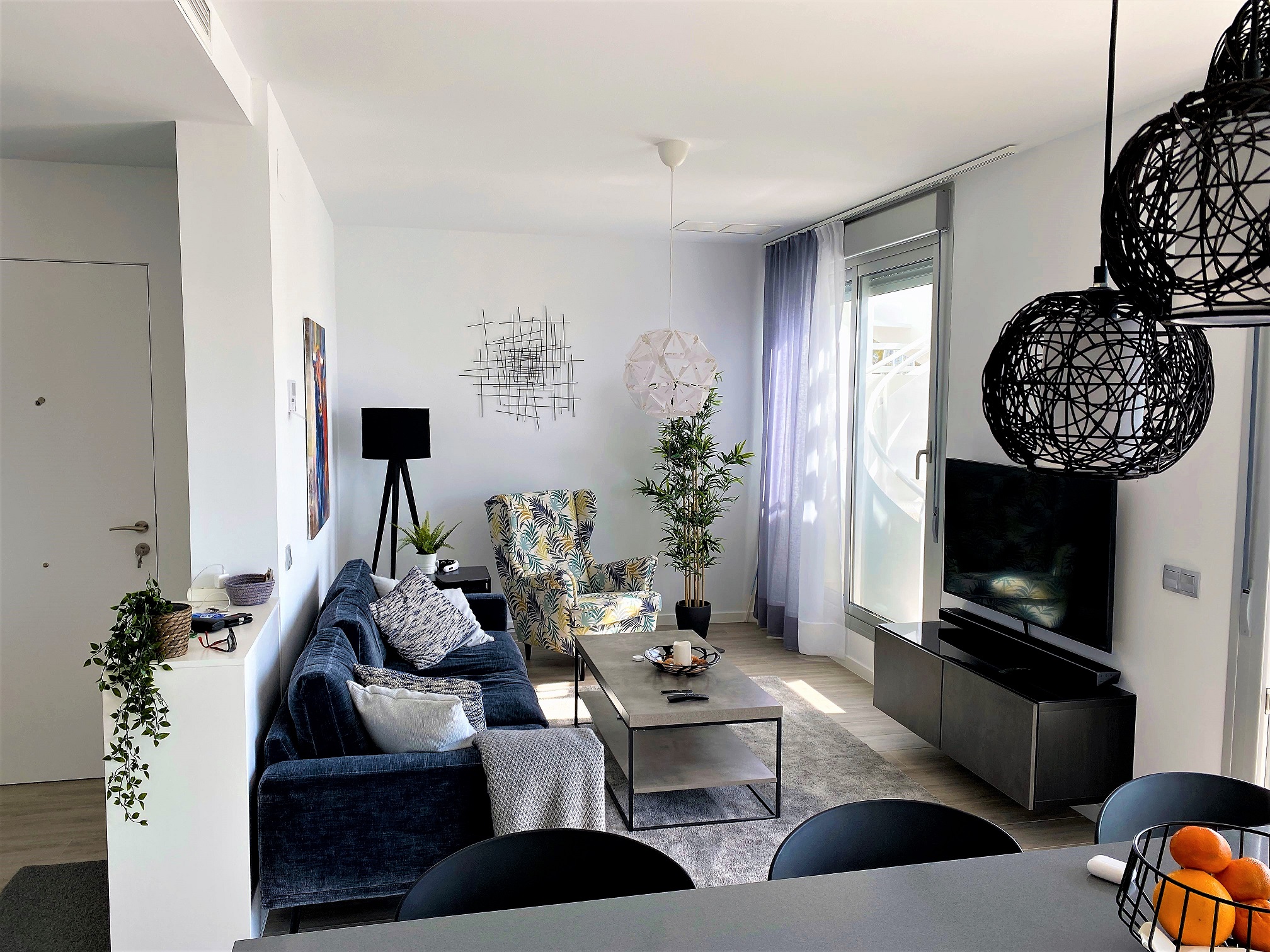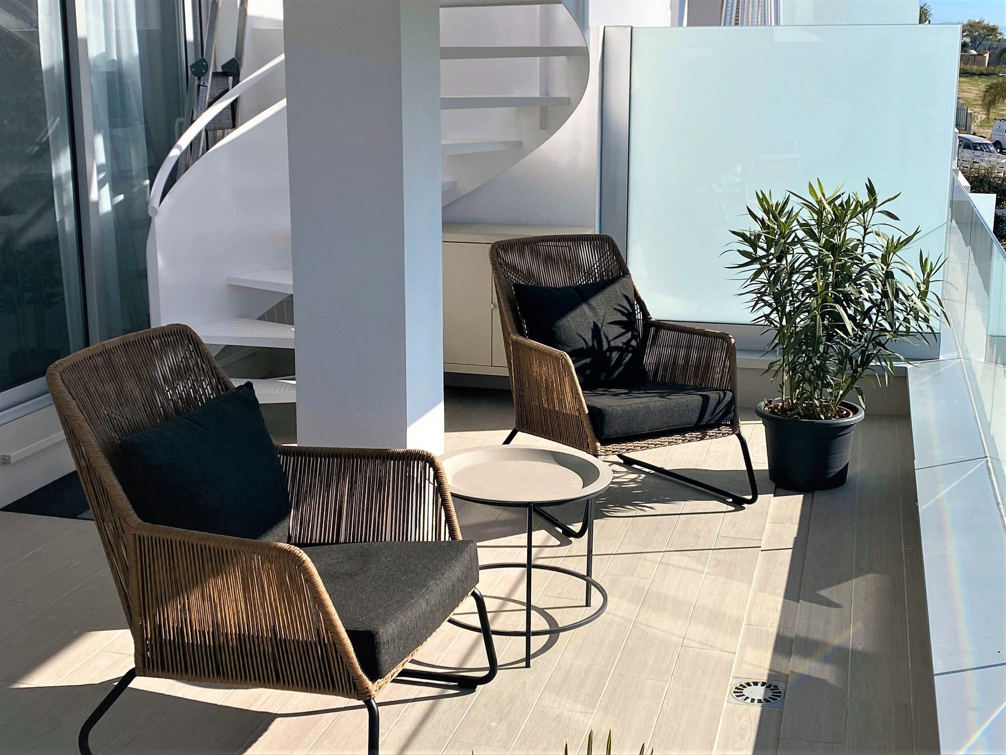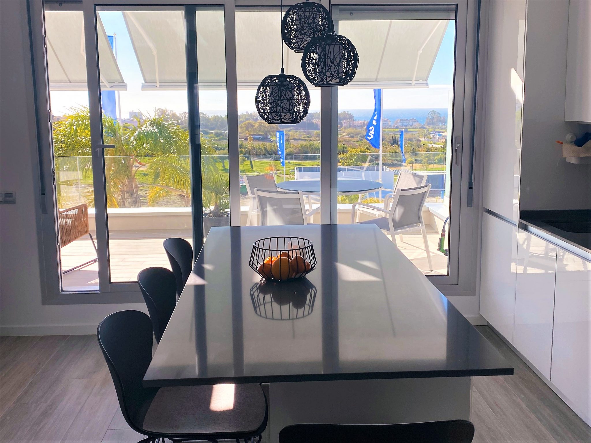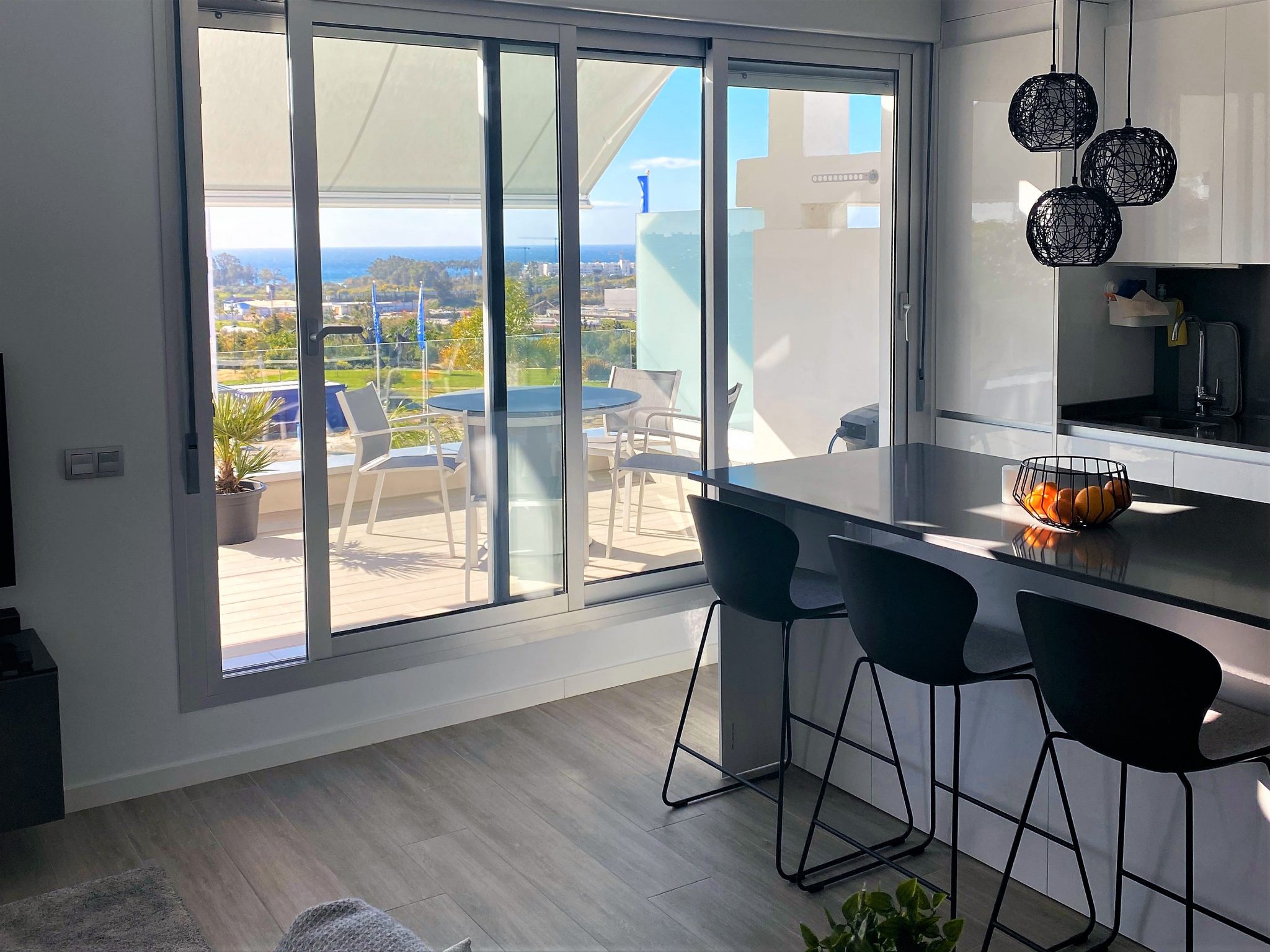 Nybyggt penthouse på ”New Golden Mile”. Perfekt läge med gångavstånd till ett brett utbud av bekvämligheter i den charmiga byn Cancelada, de gyllene stränderna och nära flera golfbanor. Penthouset har 2 sovrum samt 2 badrum, öppet kök och är byggt i högsta standard. Köket är fullt utrustat för en bekväm semester. Från vardagsrum/kök har ni access till en härlig terrass med plats att äta och koppla av. I tillägg finns det även en takterrass med matbord, solstolar och en lounge area, perfekt för härliga sommarkvällar/nätter. Från takterrassen har ni en fantastisk utsikt utöver medelhavet, med Gibraltar och Marocko i bakgrunden och även de vackra solnedgångarna bortom bergen.